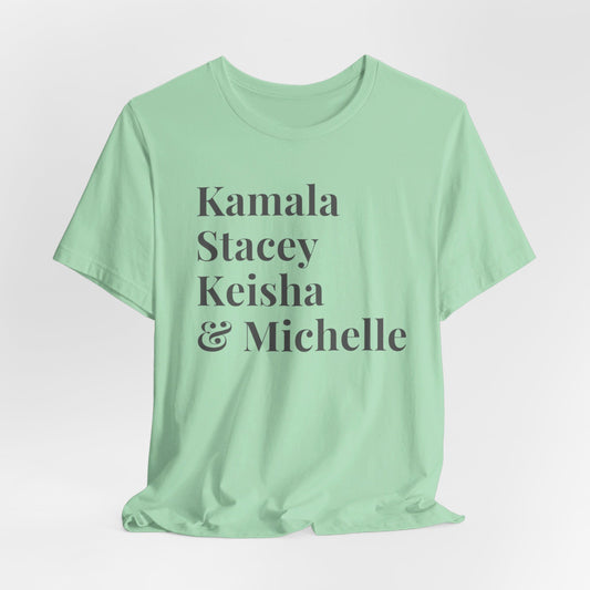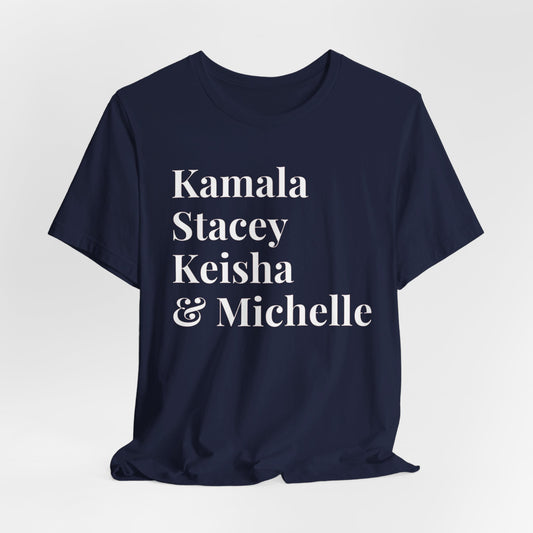 Kamala Harris 24 |Kamala, Stacey, Keisha & Michelle | Unisex T-shirt | Portion of Profits donated Harris for President | Harris Campaign Merchandise